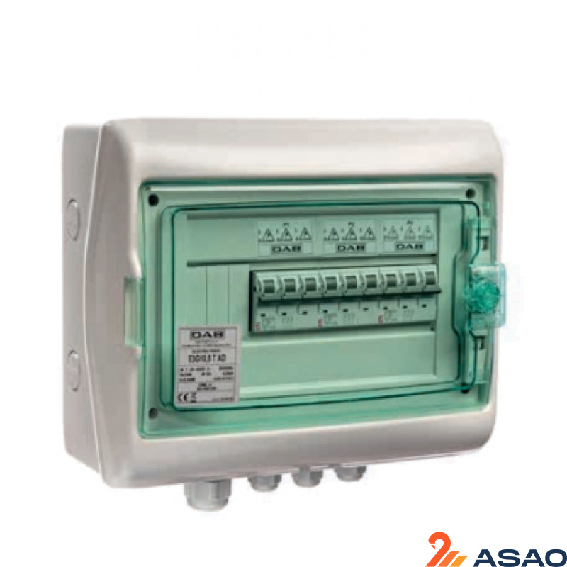 Панель управления DAB предназначена для 2 или 3 насосов с магнитотермическими выключателями для питания многонасосных агрегатов. Её можно установить на стене или непосредственно на блоки Esybox Max с помощью специальной стойки. Данная модель предназначена для трёхфазных установок 3 ESYBOX MAX.