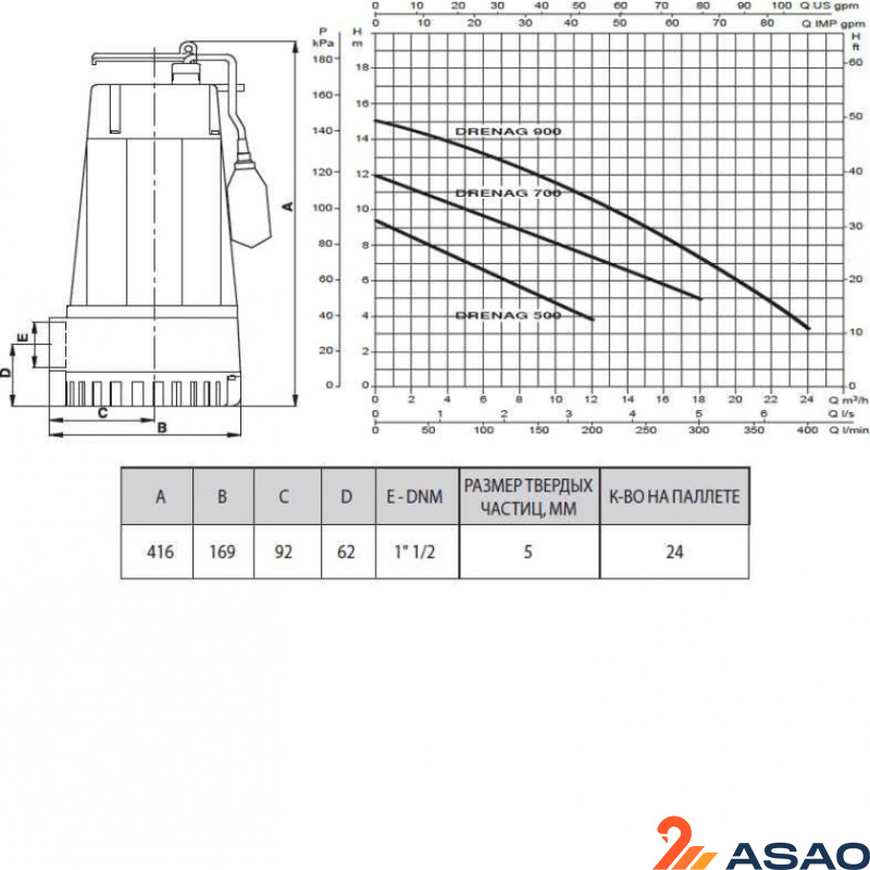Вашему вниманию представлен насос Drenag 900 M-A, который работает, погружаясь непосредственно в жидкость. Использовать его можно не только в быту и хозяйстве, но и на строительных проектах. Насос может производить перекачку чистых стоков, дождевой и грунтовых вод, а также с песком, что происходит на строительных площадках. Выполнен насос Drenag 900 M-A из нержавеющей стали. Каждая деталь: корпус, рабочее колесо, фланец двигателя, фильтр, крышка фильтра, статор двигателя, наружный корпус с ручкой и крышка отсека электрических компонентов сделаны из стали, которая со временем при контакте с водой не испортится и не деформируется. Насос может перекачивать твердые частицы, которые не превышают 12 мм. Чтобы защитить устройство от перегрева, он оснащен встроенным тепловым выключателем. А для более комфортной транспортировки – присутствует удобная ручка. Данная модель оснащена поплавковым выключателем, которая осуществляет включение и выключение работы насоса, в зависимости от уровня воды. А также присутствует электрический кабель, который достигает 10 метров в длину.