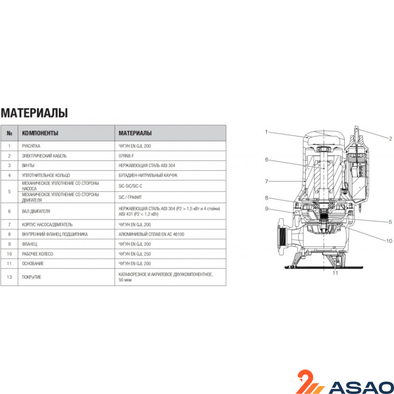 Тип перекачиваемой жидкости: вода с волокнистыми включениями, бумагой или текстилем с бытовыми или городскими отходами