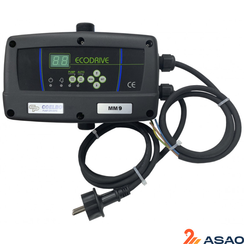 Частотный блок управления насосом Coelbo Eco Drive 9 MM Cab предназначен для управления и защиты однофазного насоса водоснабжения. Мощность инвертора 9А., частотное регулирование от 30 до 50 Гц. Контроллер обеспечивает плавный пуск и остановку насоса, тем самым снижая пусковые токи и увеличивая ресурс насосного оборудования. Очень простое программирование прибора благодаря интуитивно понятному дисплею (2-3 минуты). Встроенный датчик давления, обратный клапан, электронный манометр. Контроллер Eco Drive защищает насос по сухому ходу (с автоматическим перезапуском), предельному току (от перегрузки), от короткого замыкания. Устройство монтируется In-line (на трубопровод), подключение 1" н.р. Широкий диапазон входного напряжения 185 - 275 В., в случае выхода за пределы допустимых значений входного напряжения - прибор блокирует работу насоса. Работает до 80 метров удаления от насоса без синусного фильтра. Подключенные к прибору кабели позволяют не разбирая прибор инсталлировать его экономя время на сборку станции или гидроузла. Данная комплектация контроллера идеально подходит для использования с поверхностными, погружными скважинными насосами любых брендов! Пример подбора частотной автоматики: Находим параметр на насосе "номинальный ток", добавляем 20% полученное значение и есть максимально потребляемый ток. Пример: Насос скважинный однофазный 230 В. 50Гц. потребляемый ток 7.5А. Расчет 7.5 + 20% = 9 Ампер (Eco Drive 9 CAB подходит). Чаще всего используется в системах водоснабжения дачных домов, коттеджей, систем орошения и полива, фермерских хозяйств и т.д.
