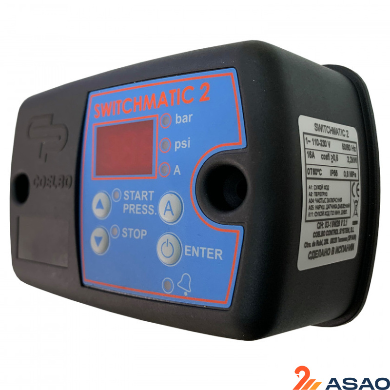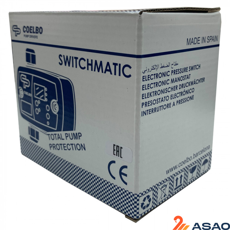Электронный блок управления насосом Coelbo Switchmatic 2 предназначен для защиты и управления однофазным насосом систем водоснабжения. Легко заменяет традиционное реле давления (гидравлическое подключение 1/4" в. р. накидная гайка). Возможность работы в каскаде из двух устройств (управление и защита станции из двух насосов. Режим работы Мастер - Слейв)
