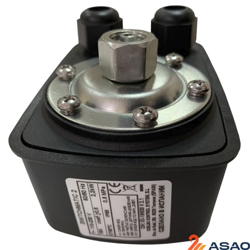 Электрическое подключение идентичное обычному реле давления. Мощность контакта - 16 Ампер, для насосов до 2,2 кВт.