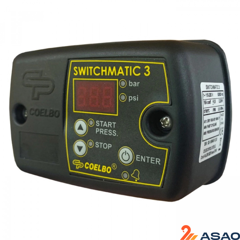 Электронный блок управления насосом Coelbo Switchmatic 3 предназначен для защиты и управления однофазным насосом систем водоснабжения. Легко заменяет традиционное реле давления (гидравлическое подключение 1/4" в. р. накидная гайка). Электрическое подключение идентичное обычному реле давления. Мощность контакта - 16 Ампер, для насосов до 2,2 кВт. Дополнительный аварийный контакт - 30Вт., для сигнальной лампы или звукового оповещателя. Прибор управляет работой насоса путем старта по заданному давлению от 0,5 до 7,5 бар и останавливает работу насоса по заданному давлению от 1 до 8 бар (выставляется на корпусе кнопками без входа в режим программирования). Пример: запуск насоса - 2 атм., остановка насоса - 3 атм. Защищает насос по сухому ходу (автоматический перезапуск). Защита насоса от цикличности (если вышел из строя гидроаккумулятор), функция может быть отключена. Благодаря встроенному в прибор электронному цифровому манометру (дисплей), легко настроить стартовое / стоповое давление и контролировать его. Множество дополнительных функций! Программирование прибора очень простое и занимает 2-3 минуты. В комплекте подробная инструкция на русском языке! Подходит для поверхностных, колодезных, скважинных насосов любых брендов! Чаще всего используется в системах водоснабжения дачных домов, коттеджей, систем орошения и полива, фермерских хозяйств и т.д.