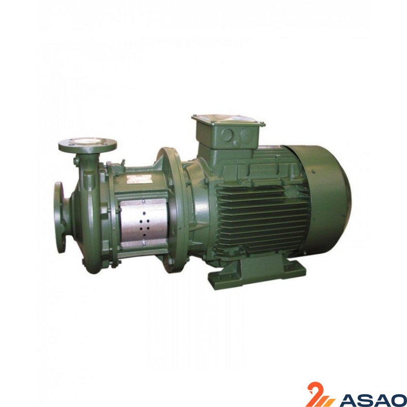 С одним рабочим колесом, спиралевидный корпус насоса изготовлен из чугуна согласно DIN-EN 733 (устар. DIN 24255); опора двигателя из чугуна; фланцы согласно DIN 2533 и DIN 2532 для DN 200..Рабочее колесо из чугуна, динамически отбалансированное, с разгрузочными отверстиями для компенсации осевых усилий, работает (устанавливются по заказу) со сменными компенсирующими кольцами.Вал насоса из нержавеющей стали AISI 304. Стандартное уплотнение: стандартизированное механическое уплотнение согласно DIN 24960, графит/карборунд с кольцевыми прокладками из EPDM.