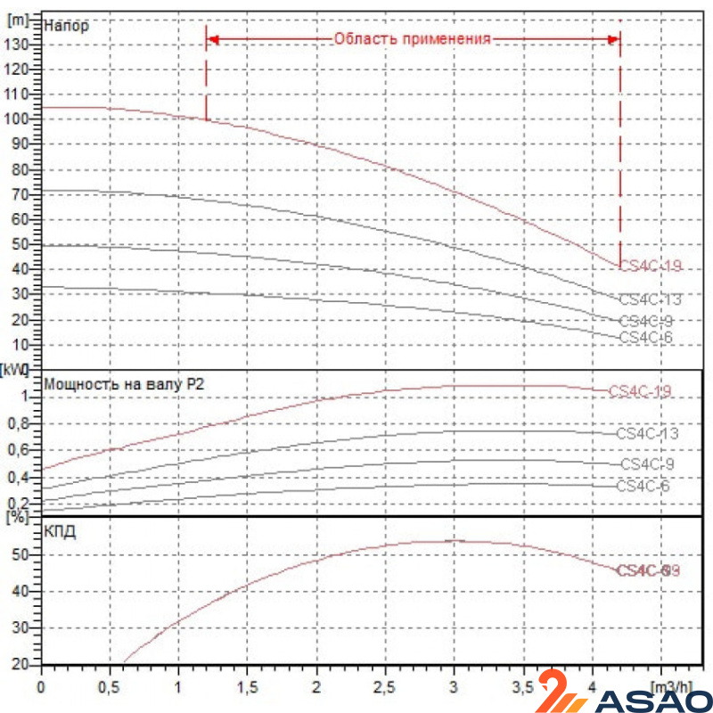 Назначение: Разработано специально для индивидуальных и коллективных систем водоснабжения. Для скважин диаметром 4" и более. Рабочий диапазон: производительность – от 0,24 до 6 куб.м/ч, напор – до 230 м. водяного столба. Перекачиваемая жидкость. Состав: чистая, без твердых включений и минеральных масел, не вязкая, химически нейтральная, по характеристикам аналогичная воде. Максимальное содержание песка в воде –120 г/куб.м. Температура: от 0°С до +40°С. Основные материалы. Рабочие колеса, диффузоры, обратный клапан и основание гидравлической части – из технополимера; кожух гидравлической части, кожух двигателя, валы, муфта, основание двигателя и защитная крышка кабеля – из нержавеющей стали. Особенности. Многоступенчатый скважинный насос. Все однофазные модели укомплектованы устройством Control Box, в которое встроен конденсатор и защита от перегрузки с ручным перезапуском. Дополнительно однофазные модели могут быть доукомплектованы (заказывается отдельно) Control Box HS для увеличения пускового момента. Для трехфазных моделей требуется внешняя защита от перегрузки. Монтаж. Вал двигателя – в вертикальном или горизонтальном положении. В случае горизонтального положения вала необходимо соблюсти требования по нагрузке подшипников и организовать поток жидкости для охлаждения двигателя. Комплект поставки: насос в сборе с кабелем длинной 15 или 30 м и нейлоновым тросом длиной 15 или 30 м в зависимости от модели. Стандартное электропитание: 1x230 В, 3x400 В. Степень защиты: IP 68. Класс изоляции: F.