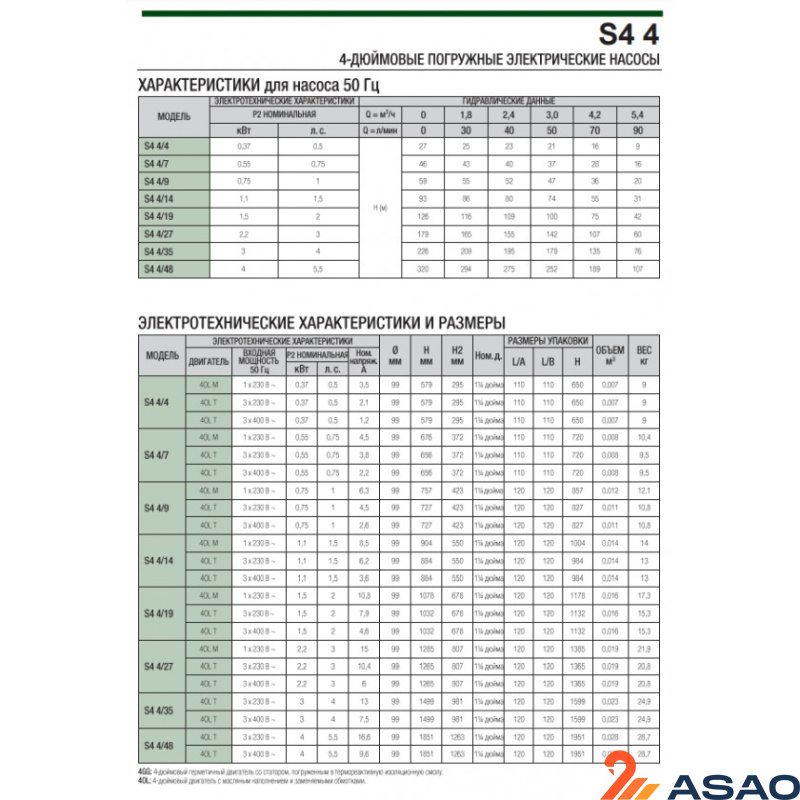 Отличительной особенностью насосов серии S4 (в отличие от насосов серии CS4) является применение нержавеющей стали в качестве материала для изготовления опоры электродвигателя, напорного патрубка и обратного клапана. Насос S4 поставляется со свободным концом кабеля. Кабель нужной длины присоединяется дополнительно с помощью заливной или термоусадочной муфты. Широкий диапазон выпускаемых фирмой DAB скважинных насосов S4 позволяет подобрать подходящий насос для абсолютно любого современного частного дома. Все насосы имеют встроенный обратный клапан и всасывающий фильтр, что исключает возможность попадания внутрь крупных частиц. Тепловая защита, встроенная в блок Control Box 4 надежно защитит насос от перегрузок.