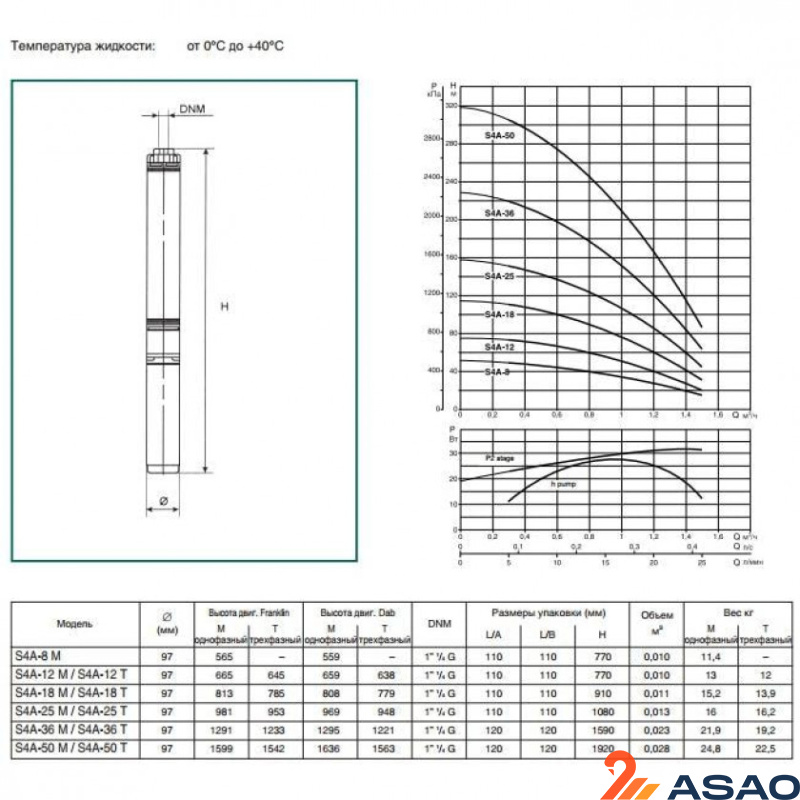 Насос подходит для скважин диfметром 4” (105 мм) и более.