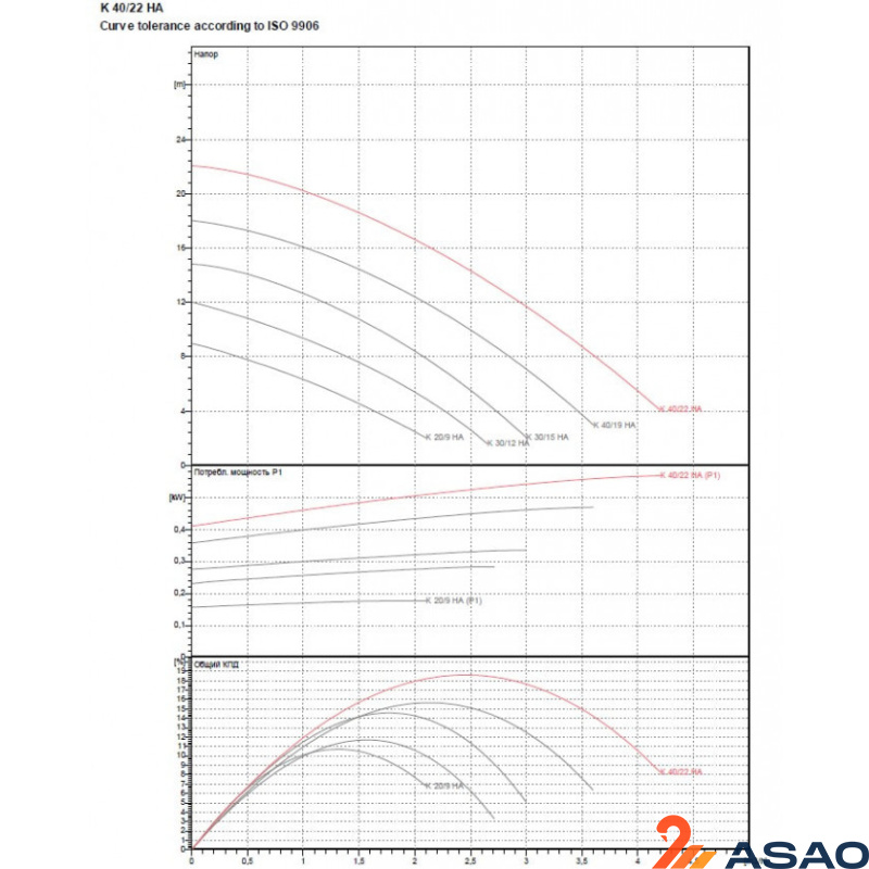 Насос центробежный DAB K 40/22 HA с одним рабочим колесом, предназначенный для повышения давления холодной или горячей воды в домашних хозяйствах или квартирах. K-HA может использоваться для перекачивания воды из открытых водоемов и емкостей, а также может быть установлен непосредственно на трубопроводе для запитывания газовых котлов и колонок. В насос встроен датчик расхода, который запускает и останавливает насос, когда кран водоразбора соответственно открыт или закрыт. Насос укомплектован сетевым кабелем длиной 0,30 метров. Насос спроектирован и сконструирован для перекачивания воды, не содержащей взрывоопасных веществ, твердых частиц или волокон с плотностью, равной 1000 кг/м3, и с кинематической вязкостью равной 1 мм2/сек, и химически неагрессивных жидкостей.