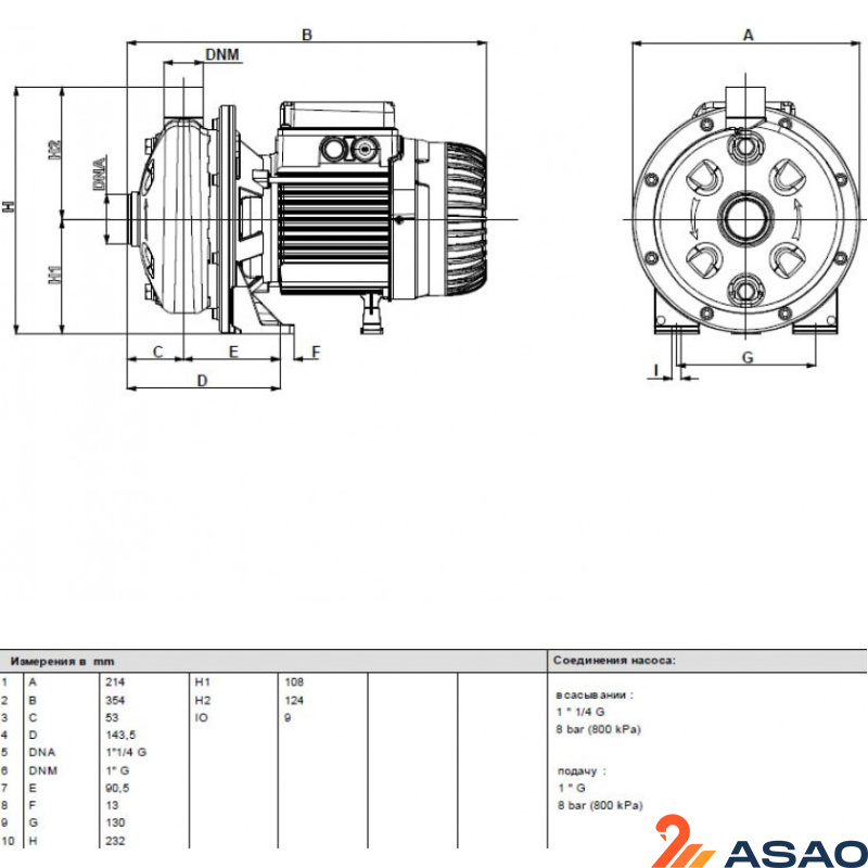 | Мех. уплотнение | Carbon/Ceramic/NBR |