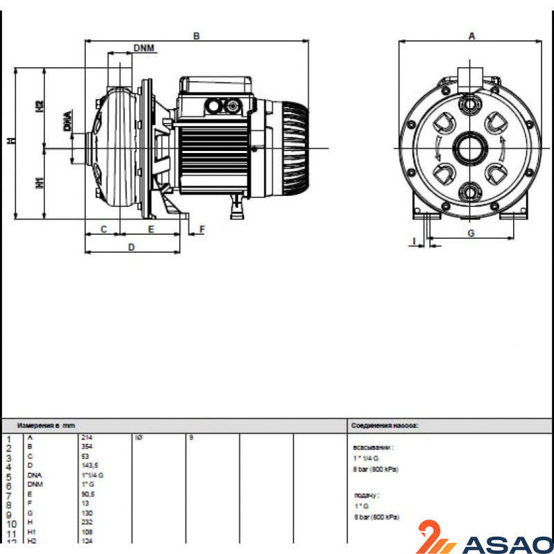 | Мех. уплотнение | Carbon/Ceramic/NBR |