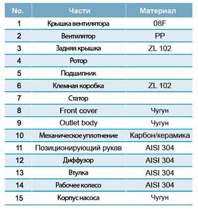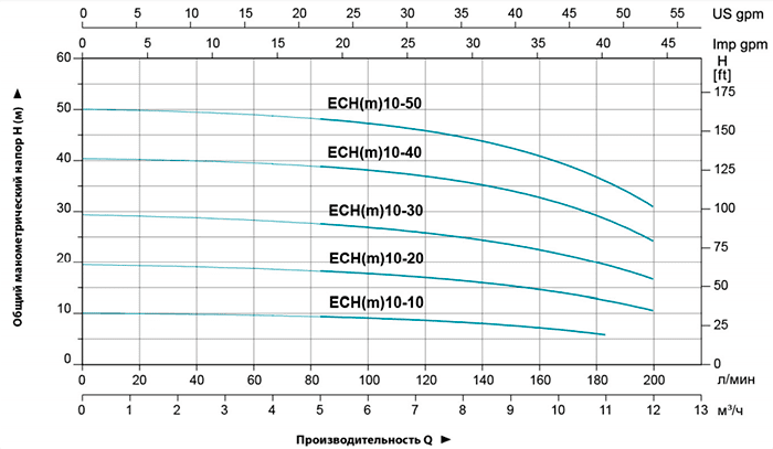 | Модель | Мощность | Q (м3/ч) | 6 | 7 | 8 | 9 | 10 | 11 | 12 | |