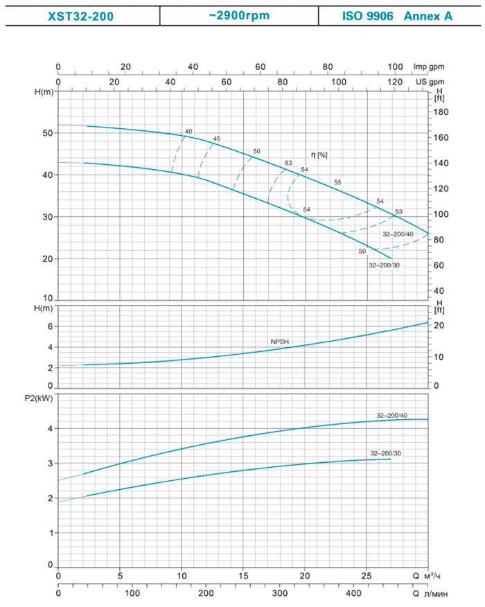 | 32-200/40* | 4 | 5.5 | 52 | 50.5 | 50 | 45 | 41.9 | 35 | 30.3 | |