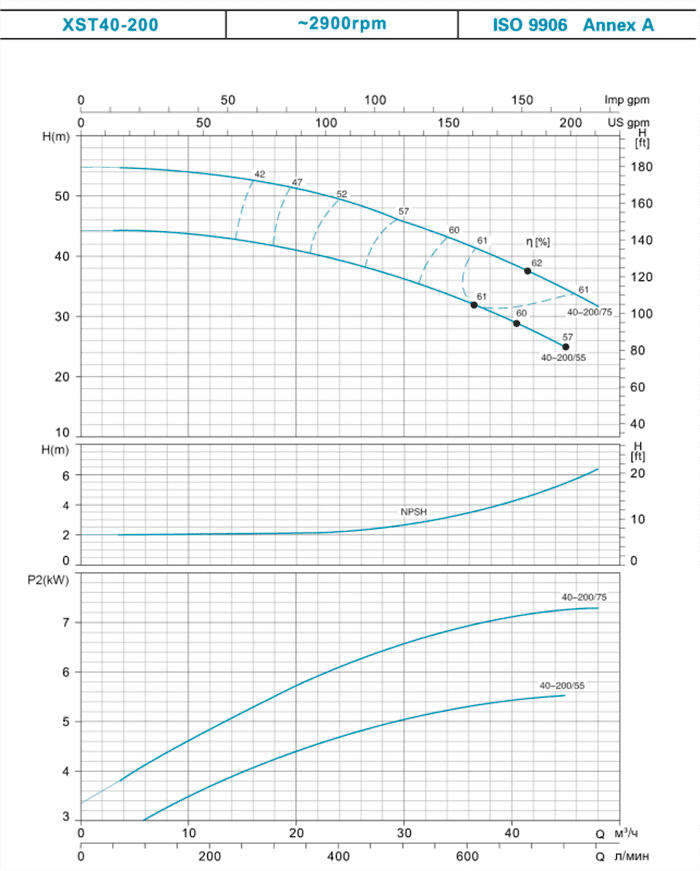 | 40-200/75* | 7.5 | 10 | 55 | 52 | 49 | 48 | 42 | 37 | 32 | |