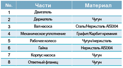 - Удобный доступ (крыльчатка, двигатель, могут быть сняты без демонтажа фланцевых соединений)