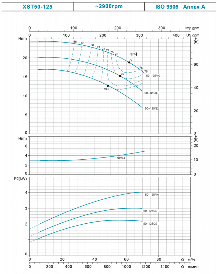 | 50-125/40 | 4 | 5.5 | 24 | 23.1 | 22.6 | 21.5 | 20.3 | 15.8 | ||