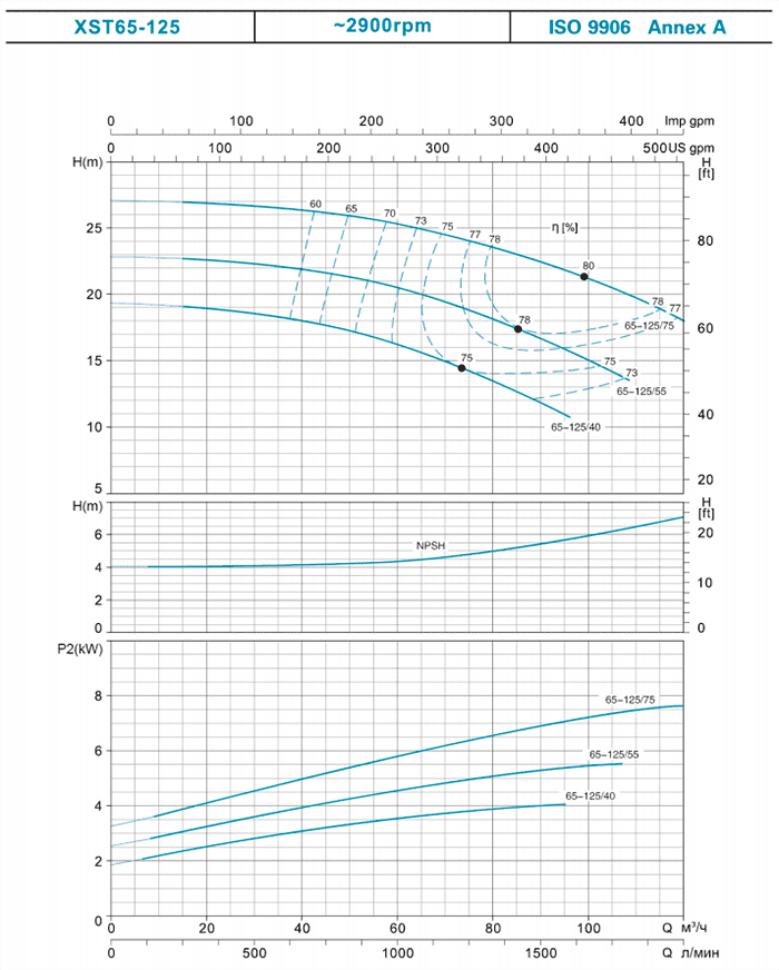| 65-125/40 | 4 | 5.5 | H (m) | 19 | 17.3 | 16.8 | 14.5 | 13 | 11.8 | |||