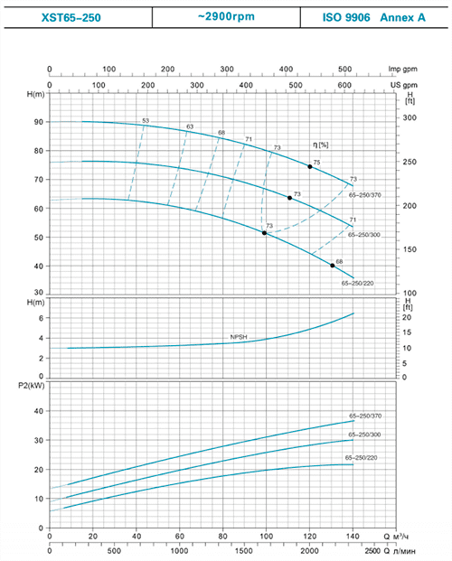 | 65-250/220 | 22 | 30 | 62 | 61.5 | 58.2 | 56.5 | 54 | 49 | 45 | |||