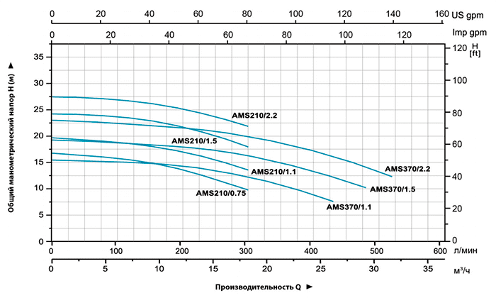 | AMSm210/0.75 | AMS210/0.75 | 0.75 | 1 | H (m) | 16.8 | 15.6 | 15.2 | 14.8 | 14.2 | 13.6 | 11.9 | 9.8 | |||||