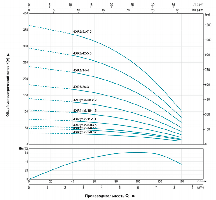 | 4XRm6/5-0.37 | 4XR6/5-0.37 | 0.37 | 0.5 | H (m) | 35 | 34 | 32 | 30 | 27 | 23 | 17 | 10 | |