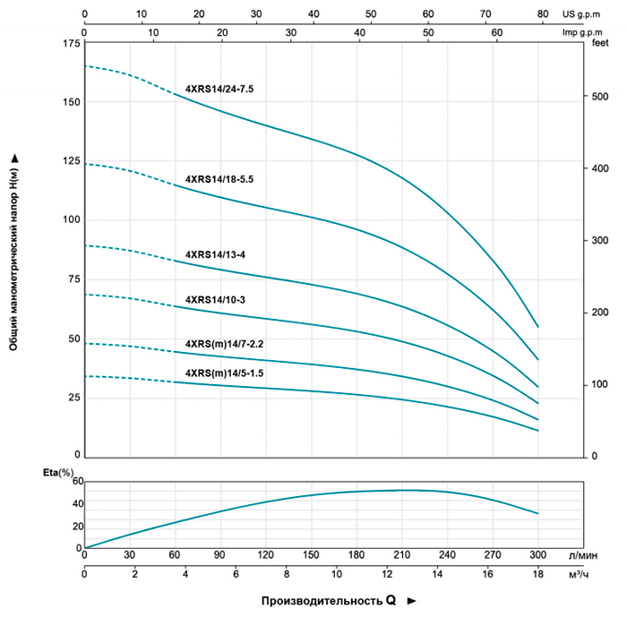 | 4XRSm14/5-1.5 | 4XRS14/5-1.5 | 1.5 | 2 | H (m) | 34 | 34 | 32 | 31 | 30 | 28 | 37 | 25 | 21 | 17 | 11 | |