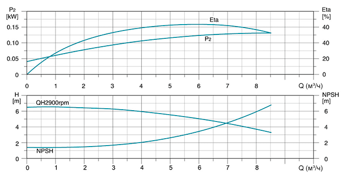 | Модель | Мощность (кВт) | Q (м³/ч) | 2,5 | 3 | 4 | 5 | 6 | 7 | 8 | 8,5 |