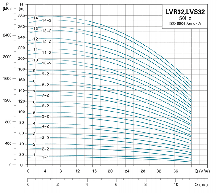 | Вертикальный многоступенчатый насос LVR32-1-1 | 1,5 | H (м) | 15 | 14 | 13 | 10 | 8 | 5 |