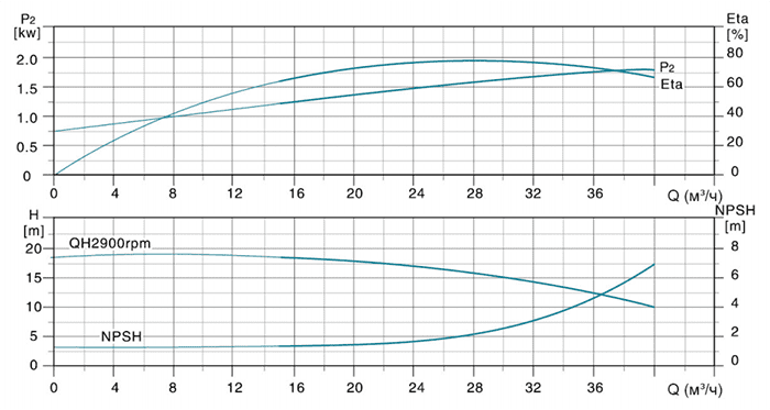 | Модель | Мощность (кВт) | Q (м³/ч) | 15 | 20 | 25 | 32 | 35 | 40 |