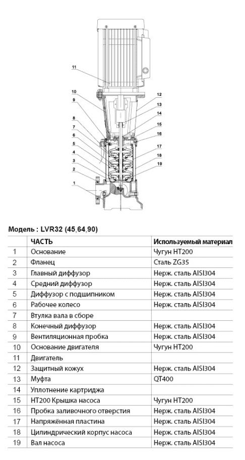| Вертикальный многоступенчатый насос LVR45-9-2 | 30 | 217 | 211 | 202 | 189 | 175 | 159 | 142 | 130 | |