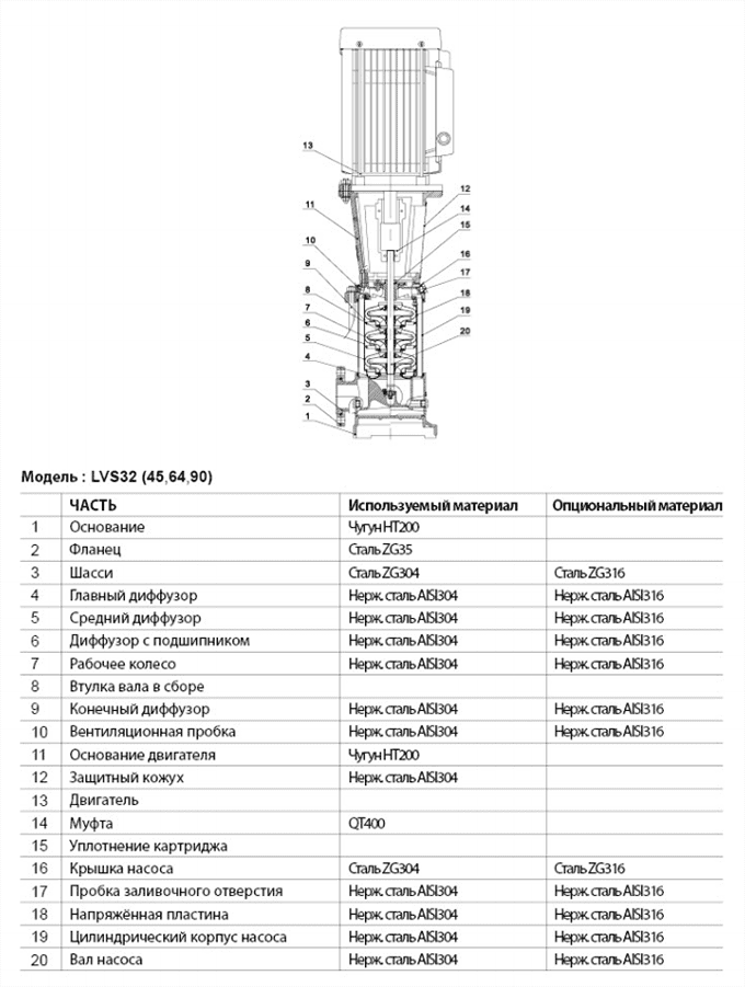 | Вертикальный многоступенчатый насос LVR45-12-2 | 45 | 298 | 289 | 276 | 261 | 242 | 220 | 195 | 179 | |
