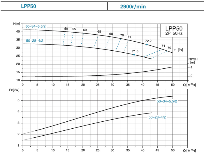| LPP50-70-7.5/2 | 7.5 | 2950 | 12.5 | 70 | 20 | 73 | 2.5 |