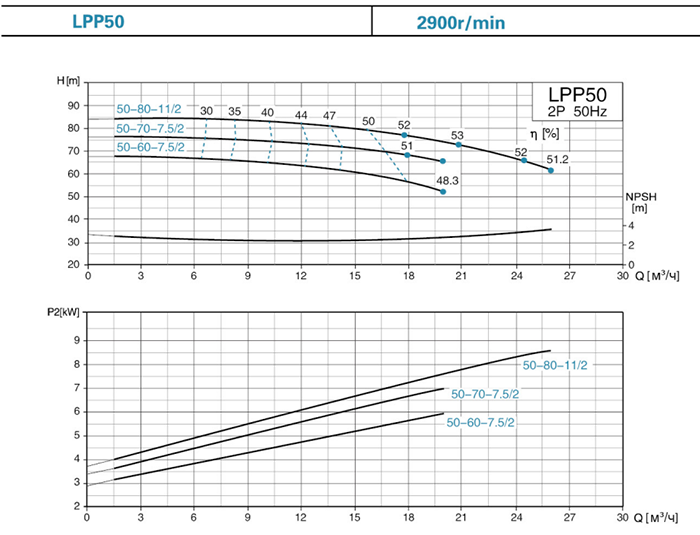 | LPP50-60-7.5/2 | 7.5 | 2950 | 12.5 | 60 | 20 | 63 | 2.5 |