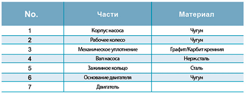 | Модель | Мощность (кВт) | Номинальные обороты (об/мин) | Номинальная подача (м³ /ч) | Номинальный напор (м) | Макс. подача (м³ /ч) | Макс. напор (м) | ДКЗ (м) |