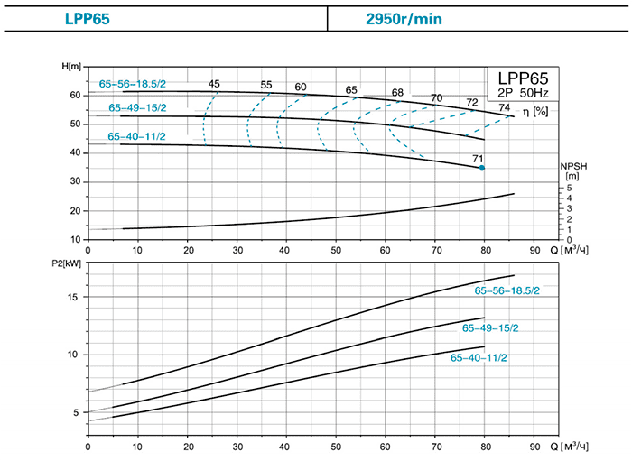 | LPP65-40-11/2 | 11 | 2950 | 56 | 40 | 80 | 43 | 2.5 |