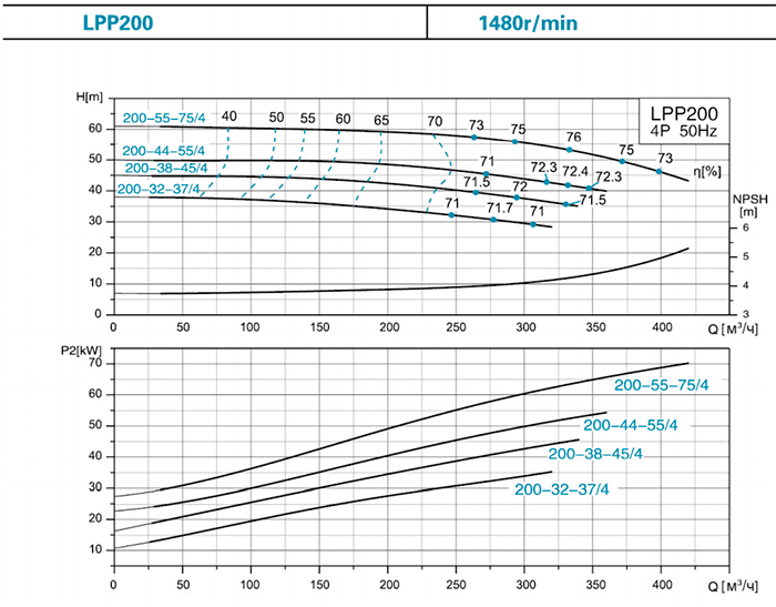 | LPP200-55-75/4* | 75 | 1480 | 300 | 55 | 420 | 61 | 5.5 |