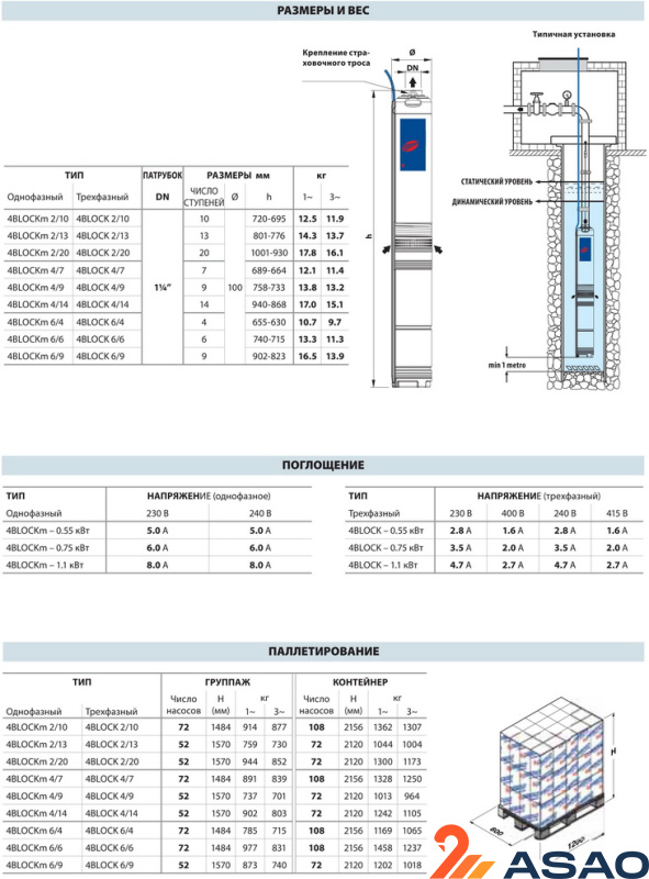 Менее мощный аналог: 4BLOCKm 4/9 (производительность - до 6 м?/час, напор - до 60 м, 220 В, 0,75 кВт)