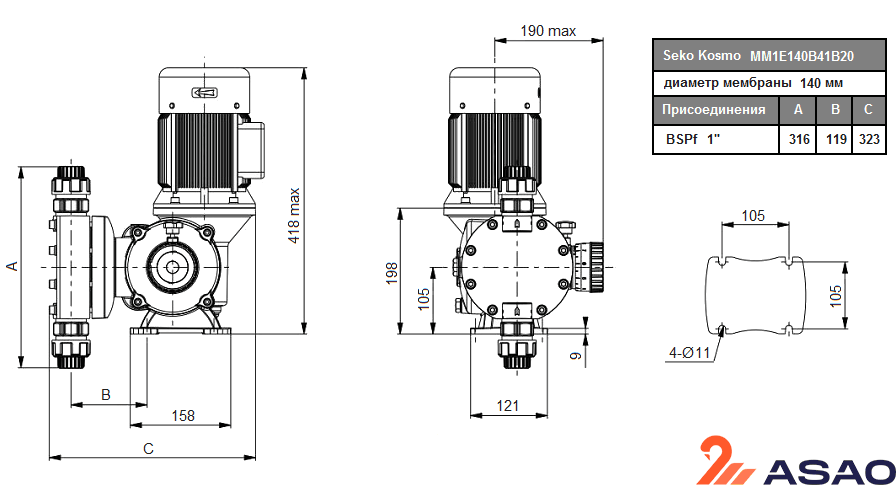 Дозирующий насос с электродвигателем Seko Kosmo MM1E140B41B20 предназначен для дозирования в воду химических веществ любого типа. Регулировка производительности осуществляется вручную путем корректировки хода мембраны (Ø 140 мм) с помощью микрометрического винта.