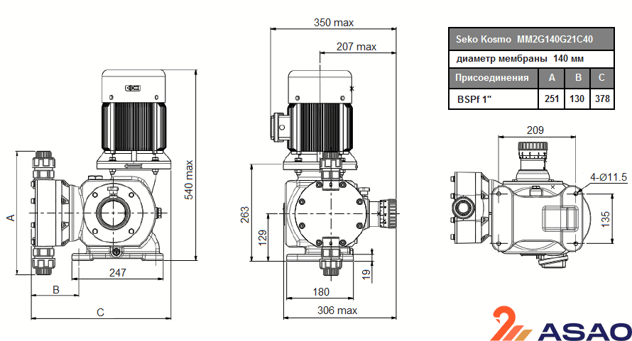 Корпус насоса MM2G140G21C40 выполнен из алюминия, а дозирующая головка из полипропилена.