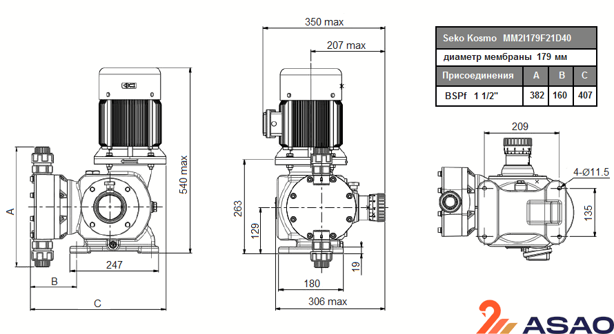 Корпус насоса MM2I179F21D40 выполнен из алюминия, а дозирующая головка из полипропилена.
