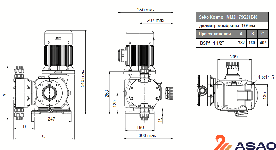 Корпус насоса MM2I179G21E40 выполнен из алюминия, а дозирующая головка из полипропилена.