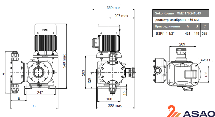 Дозирующий насос с электродвигателем Seko Kosmo MM2I179G41E4X предназначен для дозирования в воду химических веществ любого типа. Регулировка производительности осуществляется вручную путем корректировки хода мембраны (Ø 179 мм) с помощью микрометрического винта.