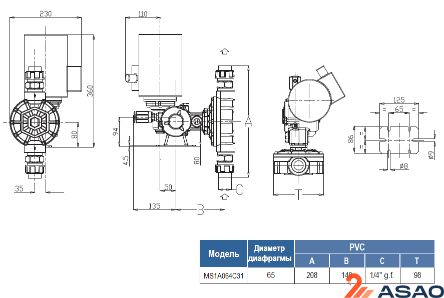 Корпус насоса MS1A064C31 выполнен из алюминия, а дозирующая головка из ПВХ.