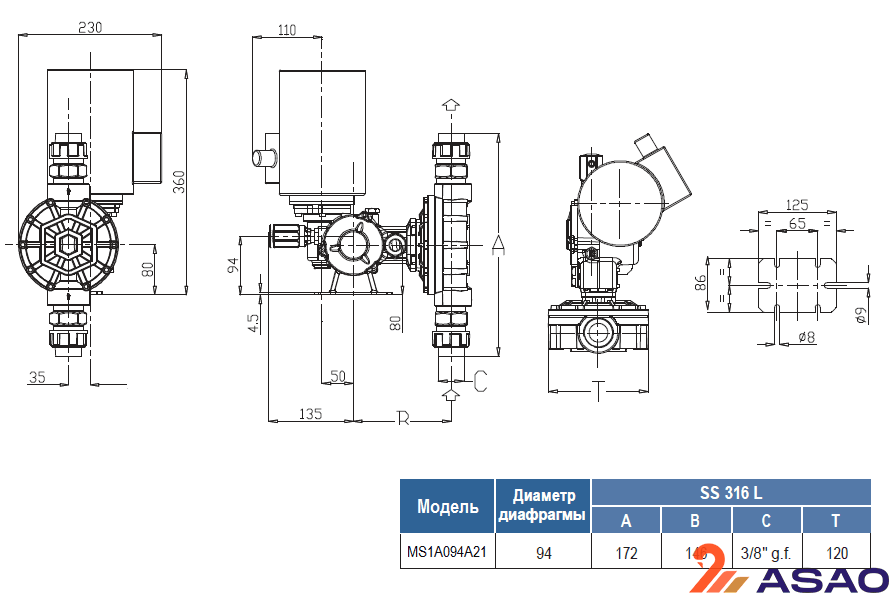 Корпус насоса MS1A094A21 выполнен из алюминия, а дозирующая головка из нержавеющей стали.