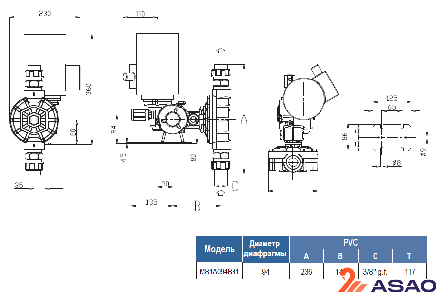 Корпус насоса MS1A094B31 выполнен из алюминия, а дозирующая головка из ПВХ.