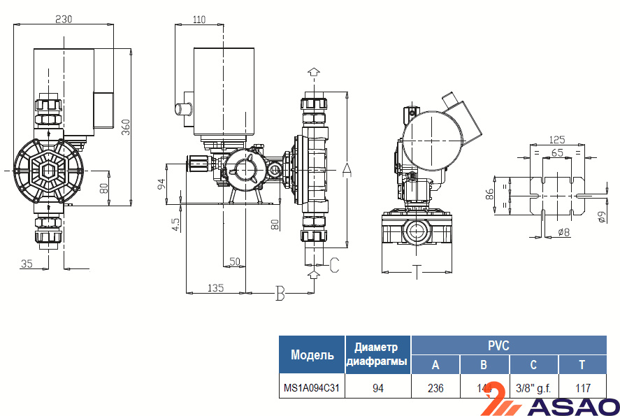 Корпус насоса MS1A094C31 выполнен из алюминия, а дозирующая головка из ПВХ.