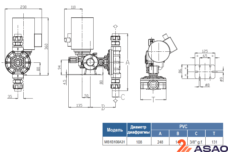 Корпус насоса MS1B108A31 выполнен из алюминия, а дозирующая головка из ПВХ.