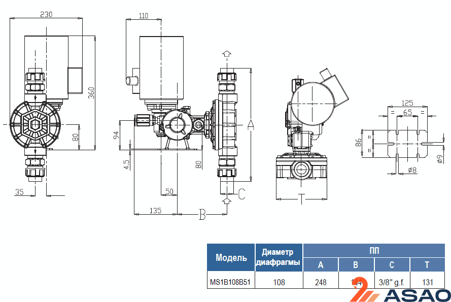 Корпус насоса MS1B108B51 выполнен из алюминия, а дозирующая головка из полипропилена.