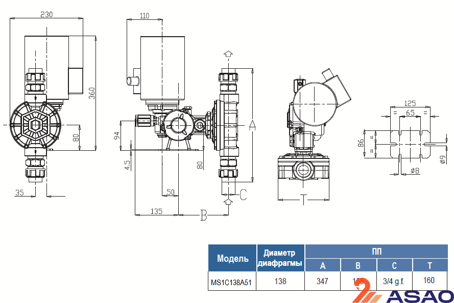 Корпус насоса MS1B108A51 выполнен из алюминия, а дозирующая головка из полипропилена.
