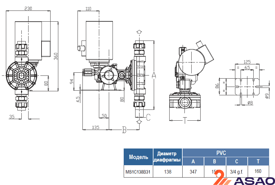 Корпус насоса MS1C138B31 выполнен из алюминия, а дозирующая головка из ПВХ.