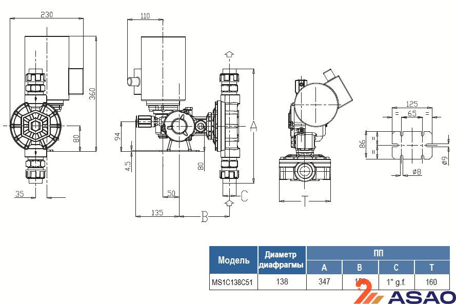 Корпус насоса MS1C138C51 выполнен из алюминия, а дозирующая головка из полипропилена.