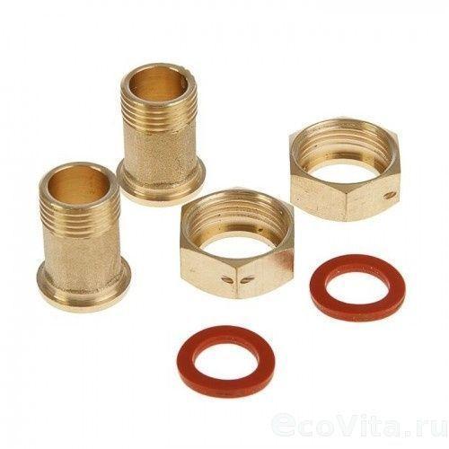 В состав комплекта входят два штуцера с накидными гайками и уплотнениями.